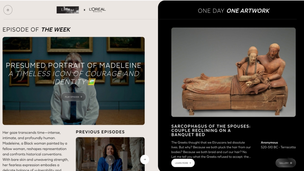 The website also present the collaboration with Le Louvre, with exclusive mini-series exploring the connections between art and beauty. Each episode highlights a specific theme or era showing how beauty and art continue to shape our worldview.